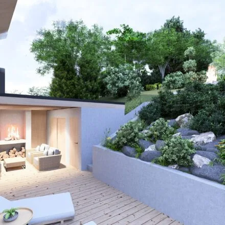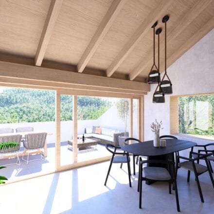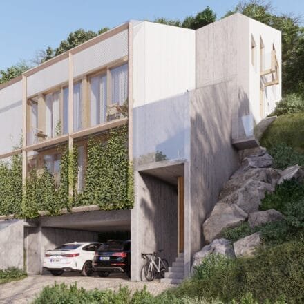 Dům Skála se ve své neotřelé kráse skví v Lelekovicích na skále porostlé hustou vegetací. Jeho orientace na západ nabídne kouzelné výhledy na Babí lom a zelené pahorky Lelekovic, pohled na východní stranu zabloudí do svěží zeleně prostorné zahrady.