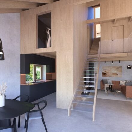 S touto definicí plně souzní návrh domu Skála v Lelekovicích. Autorsky je podepsán společností Atelier 90, která působí na architektonické scéně již 34 let a je nositelem řady ocenění (Grand prix obce architektů, Cena za vynikající design, Cena inženýrské komory, Stavba roku Kraje Vysočina atd.). Krom kulturních a kongresových center byly podle projektů A90 postaveny mnohé bytové domy a obytné soubory v Praze, Brně, Jihlavě a Dobřichovicích. Do portfolia A90 se řadí také rodinné domy, vily, územní plány, muzejní expozice a rekonstrukce či dostavby významných budov (budova Českého rozhlasu v Praze, Ústavní soud v Brně, dostavba Mohyly míru atd.).